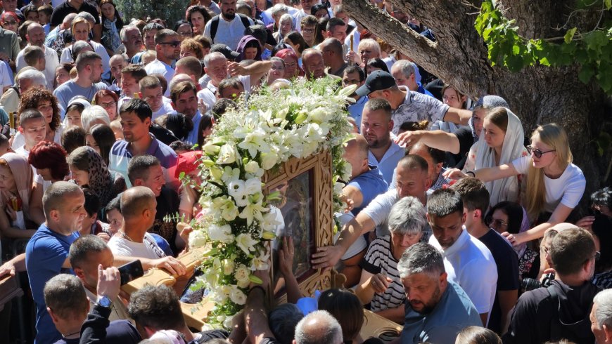 Након Свете литургије обављен је молебан са освећењем воде, свечана литија и кропљење народа. Верницима су на благослов подељени освећени листићи ловора и маслине, као и латице белих и црвених ружа.