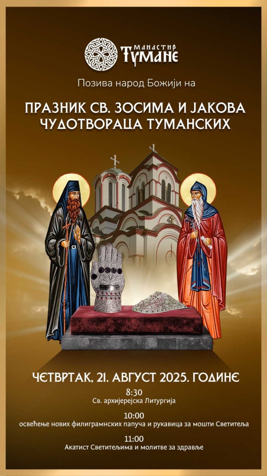 СПИСАК ОРГАНИЗАТОРА ЗА ПРАЗНИК СВ. ЗОСИМА И ЈАКОВА ТУМАНСКИХ ЧУДОТВОРАЦА 21.08.2025.